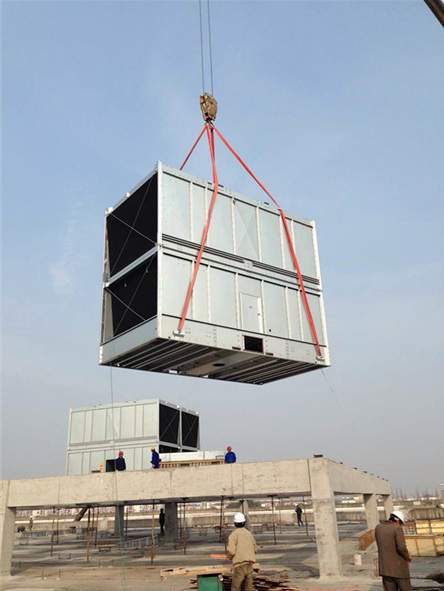 惠州東江環(huán)保橫流方形冷卻塔安裝 廣東特菱空調(diào)(http://ltx1718.com)方形橫流式玻璃鋼冷卻塔結(jié)構(gòu)特點: (1)擋板:玻璃鋼材質(zhì),表面光滑美觀,耐腐蝕,防老化。 (2)填料:改性聚氯